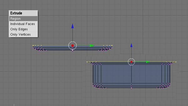 Select all of the vertices by pressing “A”, and extrude the region to an adequate height.